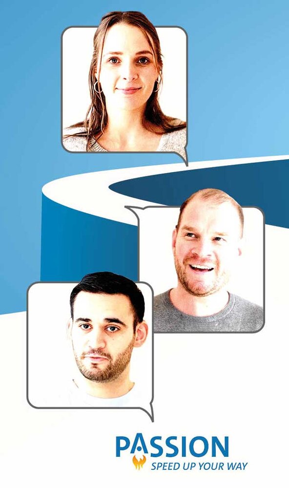 Sich beruflich weiterentwickeln, sich selbst besser im Berufsalltag verstehen, in eine Führungsrolle wechseln – Passion bietet seinen Teilnehmerinnen und Teilnehmern die Chance, die gewünschten Karrieremöglichkeiten innerhalb des Unternehmens zu verwirklichen. Ahmed Zaitoun, Justine Langer und Tim Doenselmann gehören dazu. Sie durchlaufen mehrere Stationen, arbeiten aktiv in verschiedenen Projekten mit und sammeln wertvolle Praxiserfahrung. Die Programmdauer ist flexibel, bis zu 24 Monate sind möglich. Unterstützt werden sie von einer Mentorin oder einem Mentor, die die berufliche und persönliche Entwicklung begleiten. Ergänzt wird das Ganze durch Basismodule, in denen ihre Werte reflektiert und moderne Führung erlebbar gemacht wird.